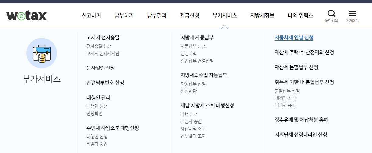 자동차세는 위택스에서 신청/납부할 수 있습니다.