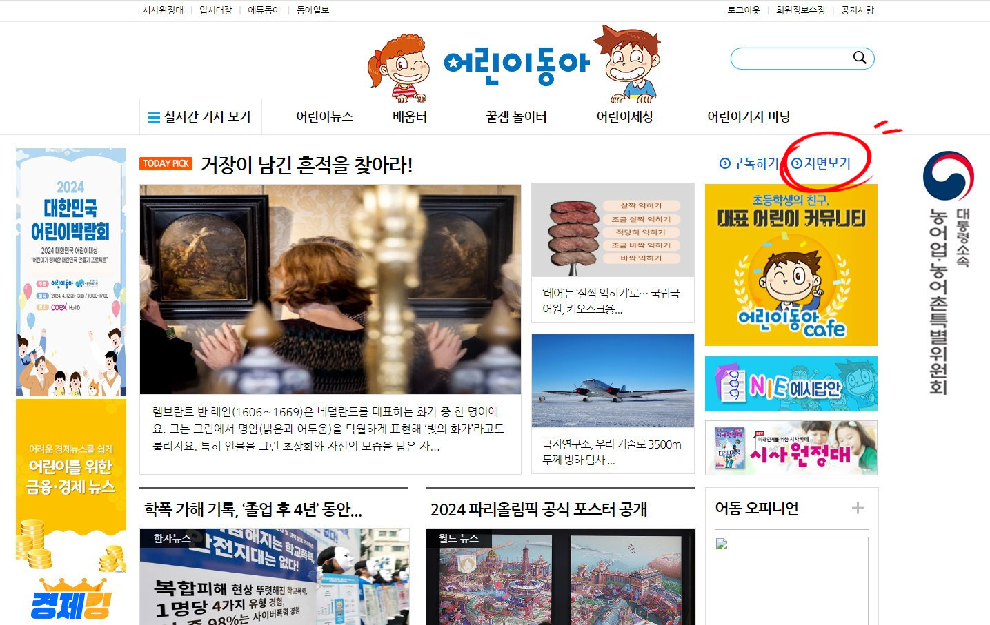 어린이동아 지면보기